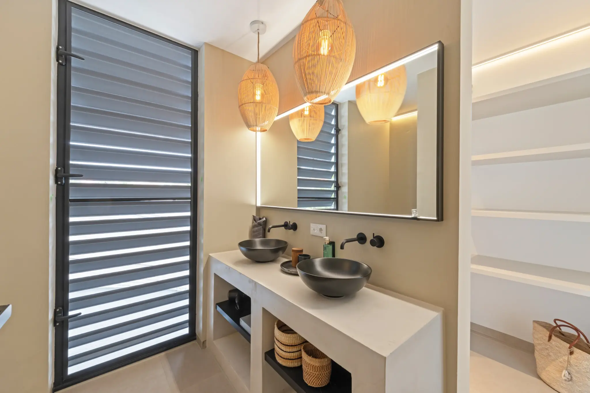 - Air conditioning and shutters with mosquito nets