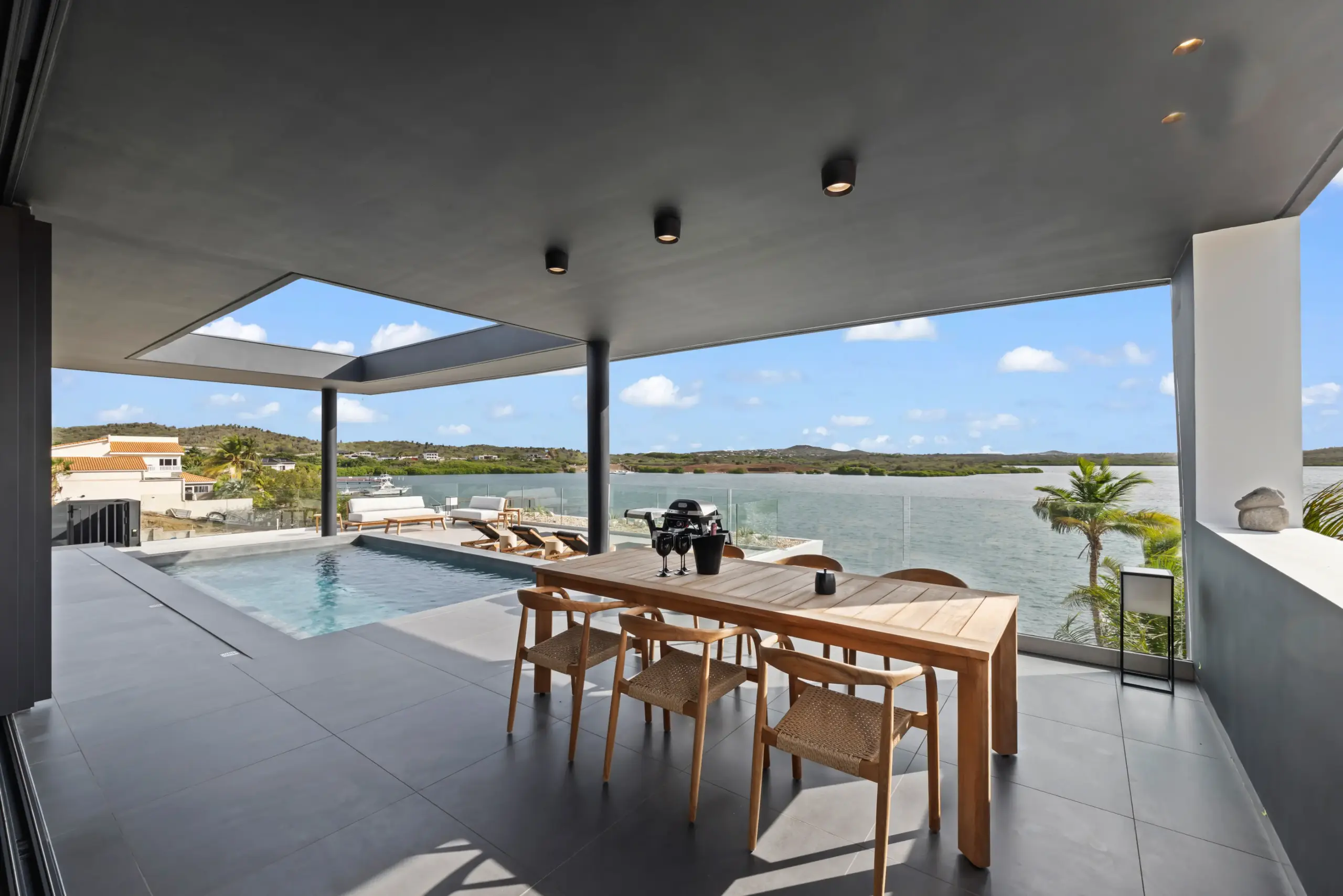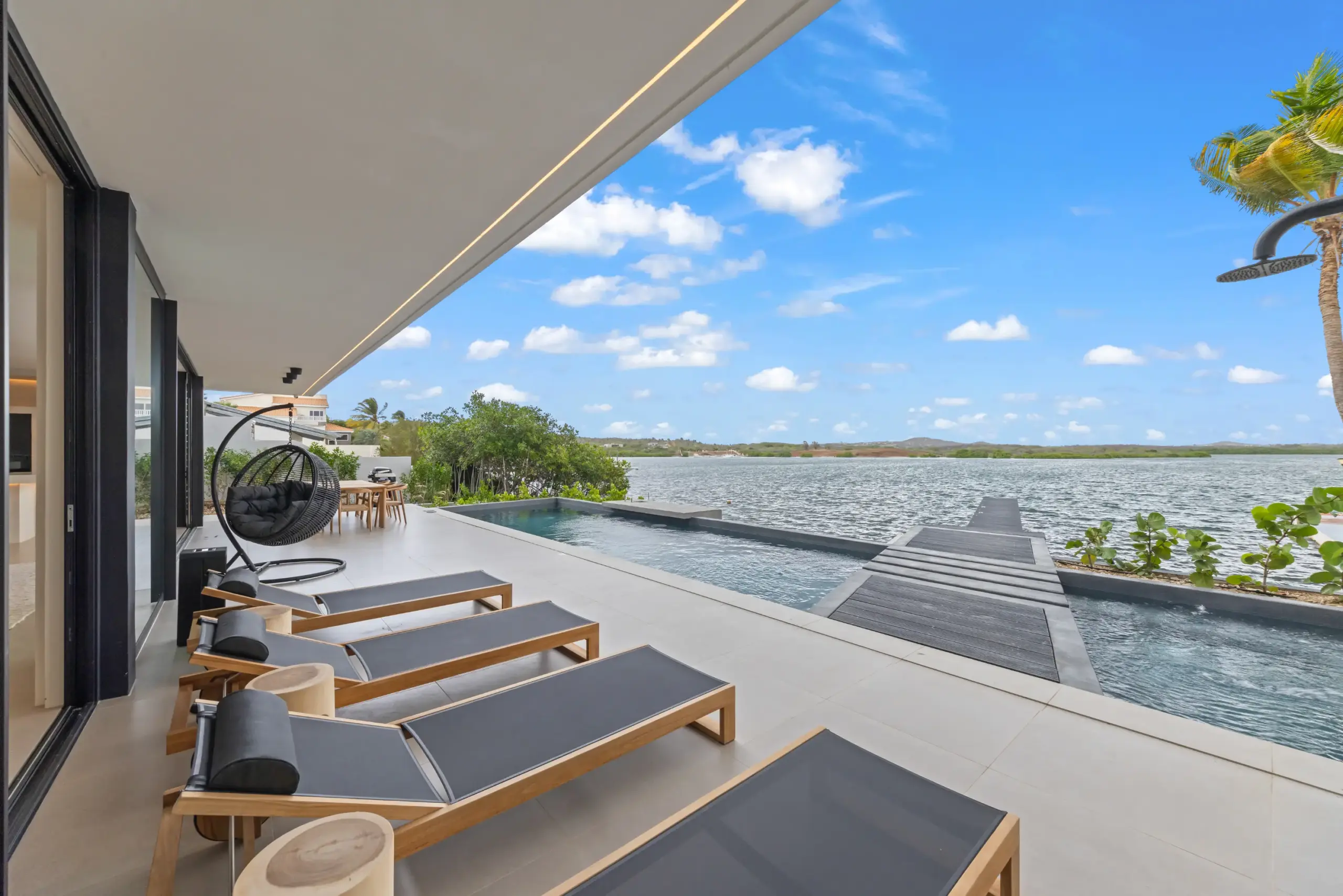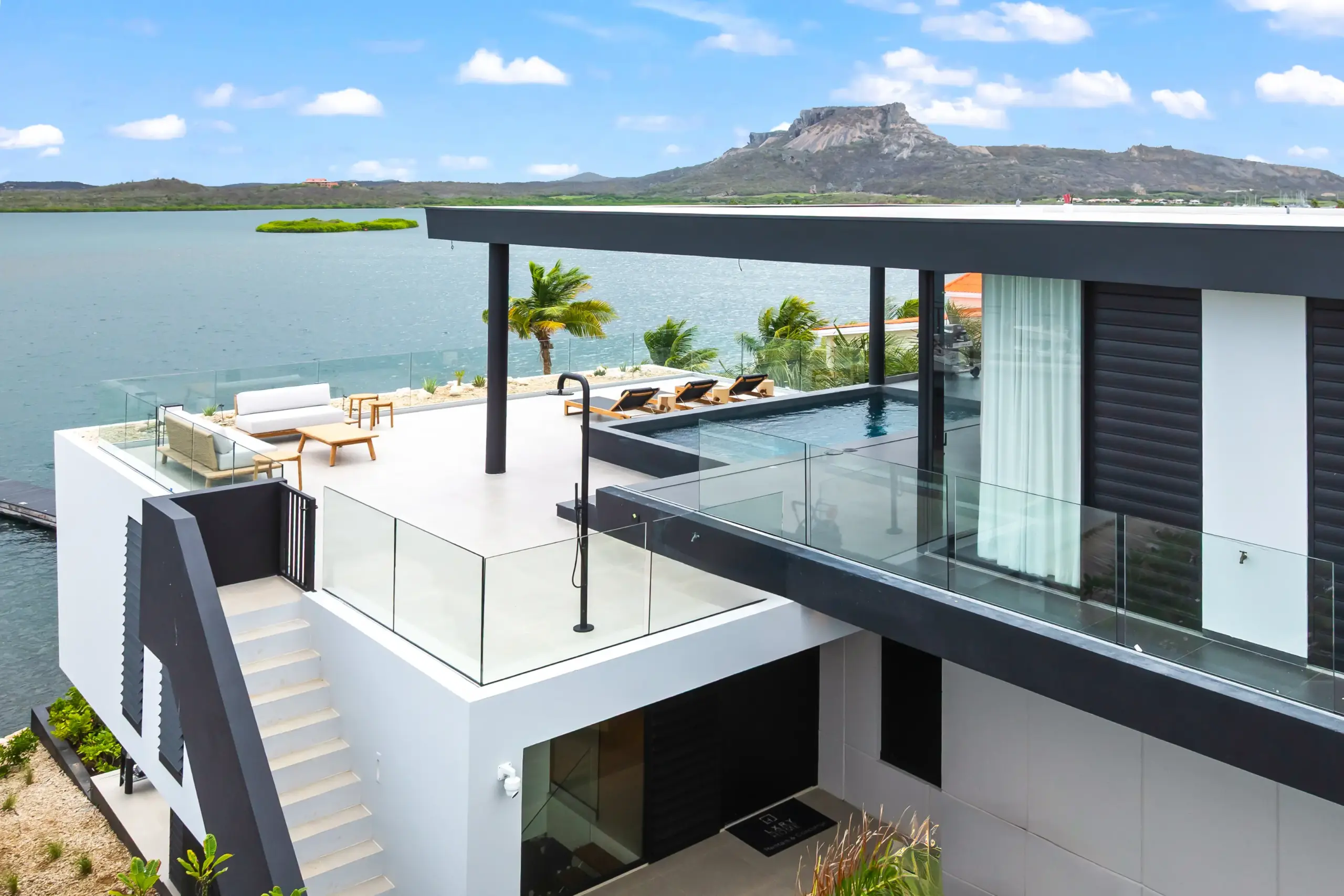 Het buitenleven is ronduit spectaculair: twee architectonisch geplaatste zwembaden vormen zich in de tegenoverliggende hoeken van de gevel. Een van deze zwembaden is voorzien van een elegante zitkuil aan het water, ontworpen als een zwevend spiegelbeeld boven zee. Hier vindt u een lounge, jacuzzi en een tweezijdige bar, het perfecte decor voor stijlvolle ontspanning of exclusieve momenten te beleven.