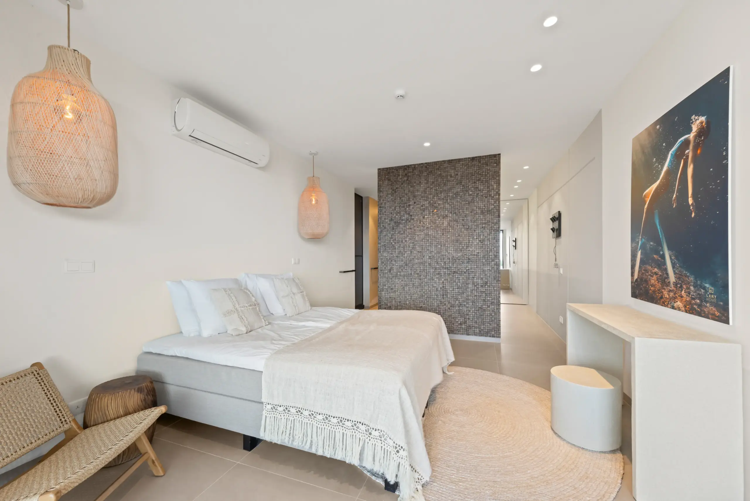 In The Wave Villa gaan design en comfort hand in hand. Elke van de 6 slaapkamers is individueel ontworpen om rust, privacy en een maximaal gevoel van luxe te bieden, met royale oppervlaktes en slimme indeling, 5 van de 6 slaapkamers heeft direct zeezicht.