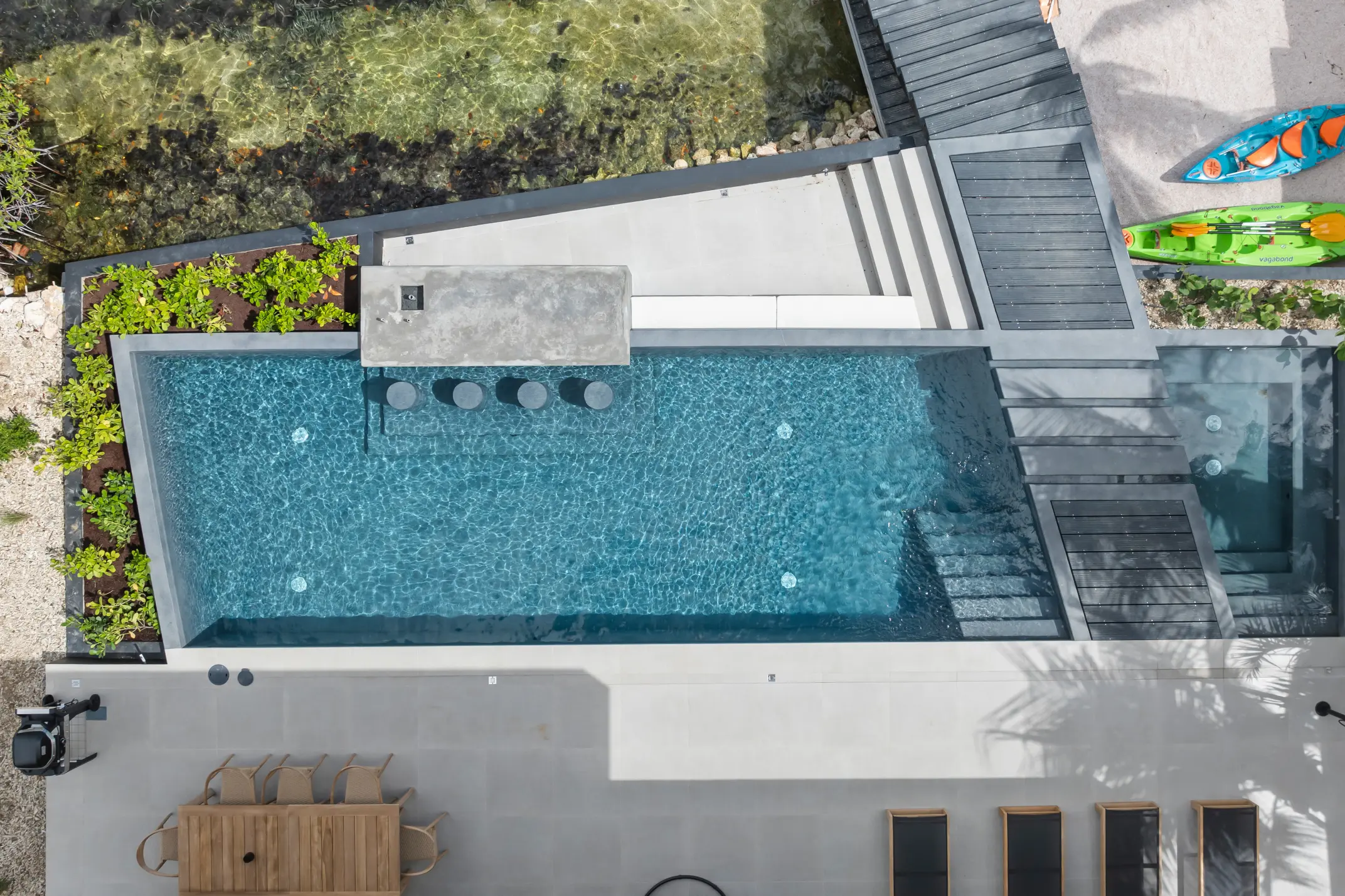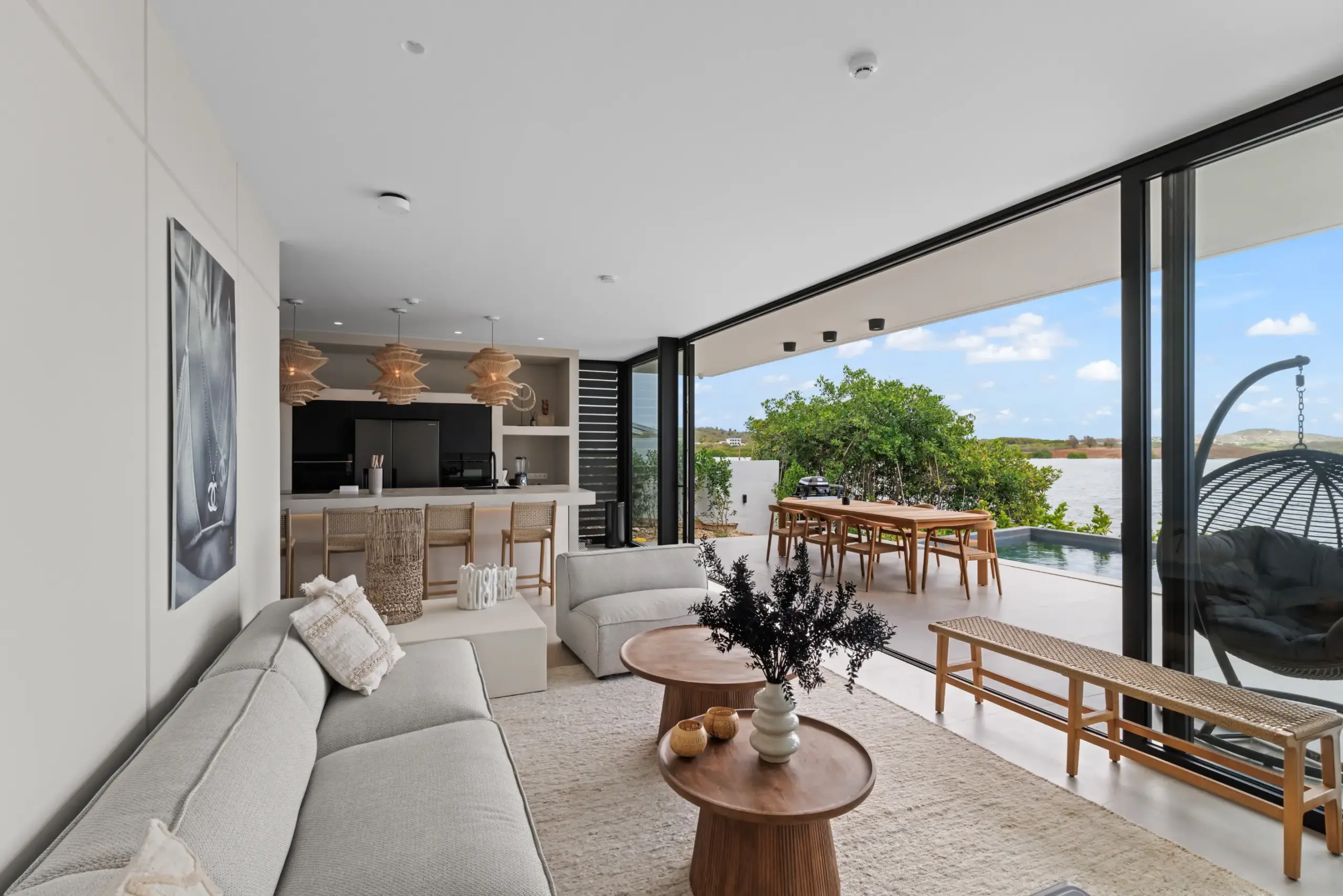 Ontworpen als privé toevluchtsoord, met uitzicht over het water en een serene verbinding tussen binnen en buiten.
